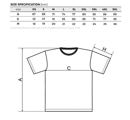 Velikosti: XS – 5XL (vel. 5XL je dostupná jen v barvách bílá, černá a námořní modrá)